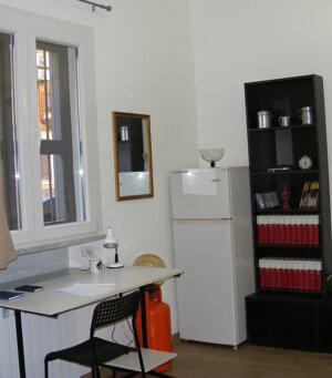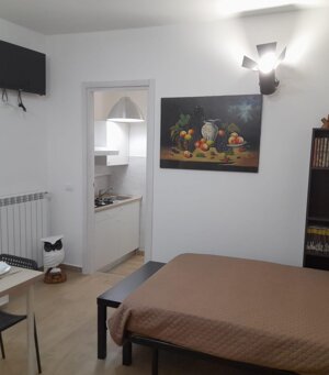 Letto una piazza e mezzo (120cmx190cm) cucina (frigo, microonde e lavabiancheria)